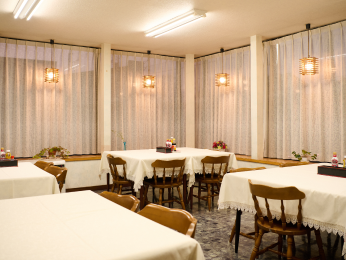 朝・夕食会場となるほか、無料のコーヒーマシンや共用冷蔵庫がございます