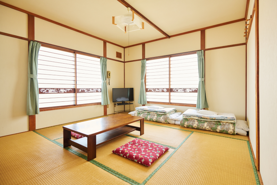 ゆとりある8畳の和室。2〜3名様でのご利用に最適です。広々とした空間で、グループやご家族でもゆったりとお過ごしいただけます。
